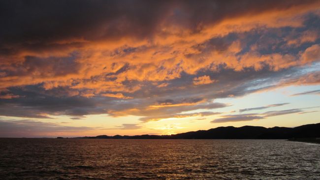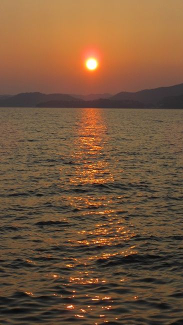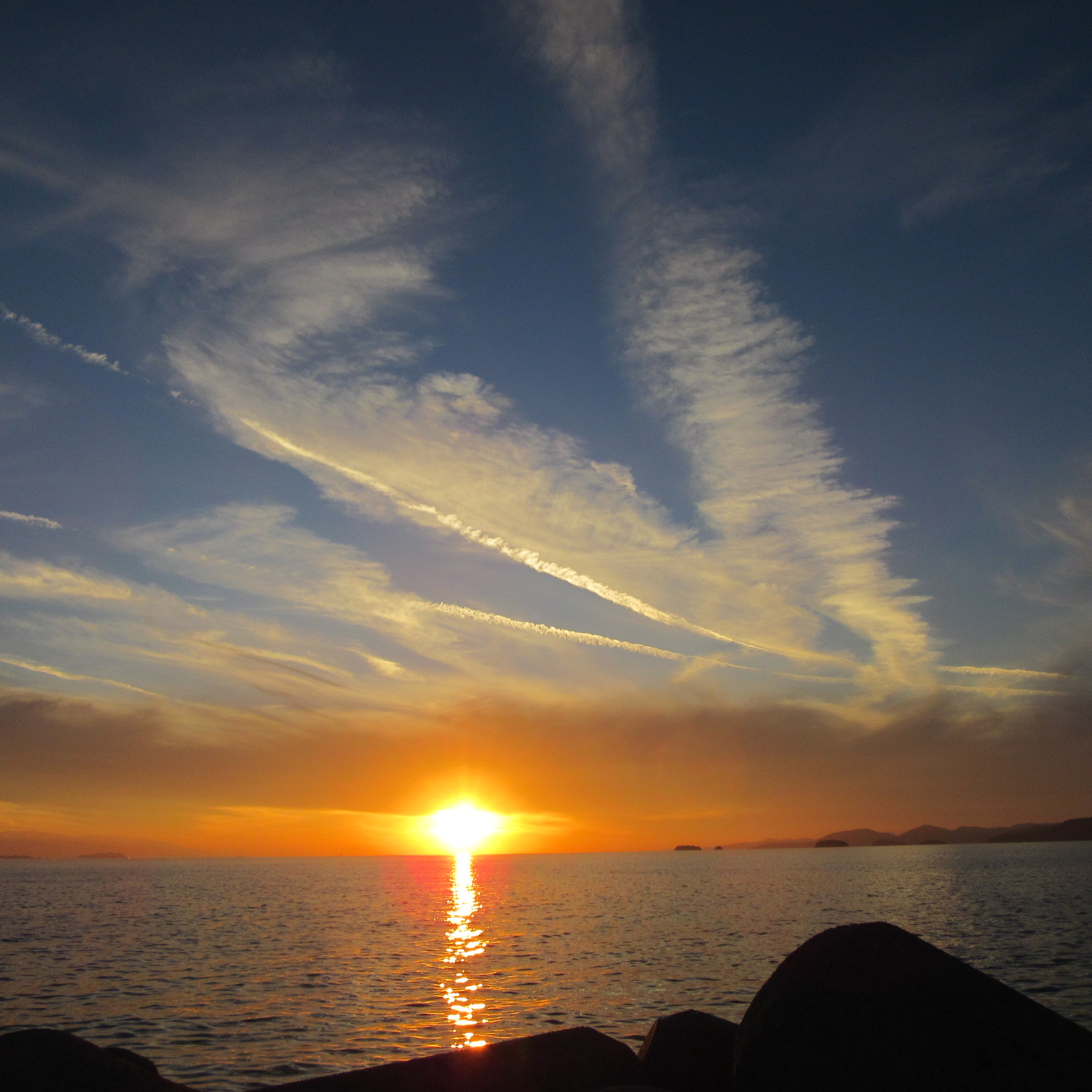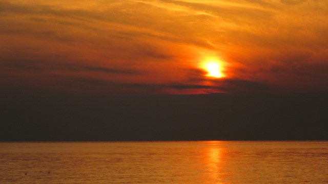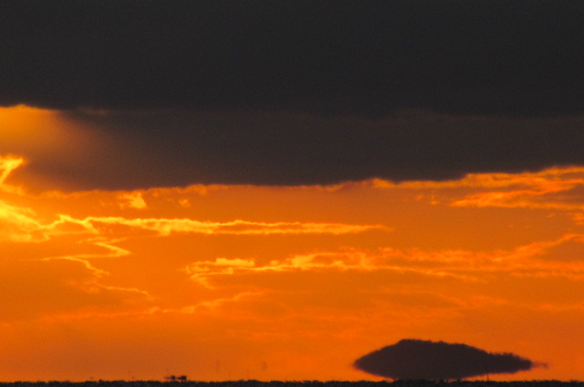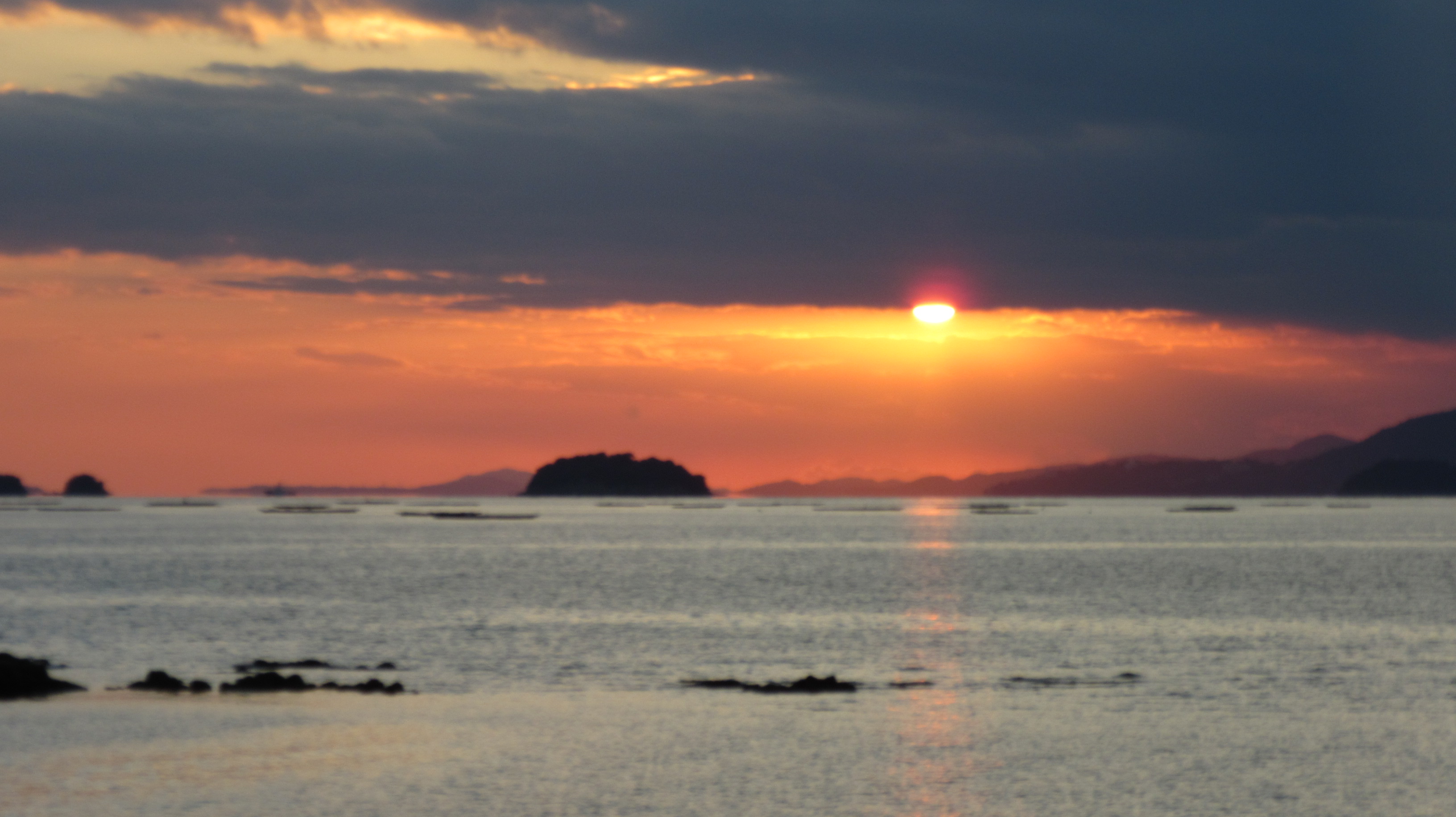 ただひとつの朝焼。雲の中へ日没(^_^;)少しの間だけ顔見せ見事な夕陽です