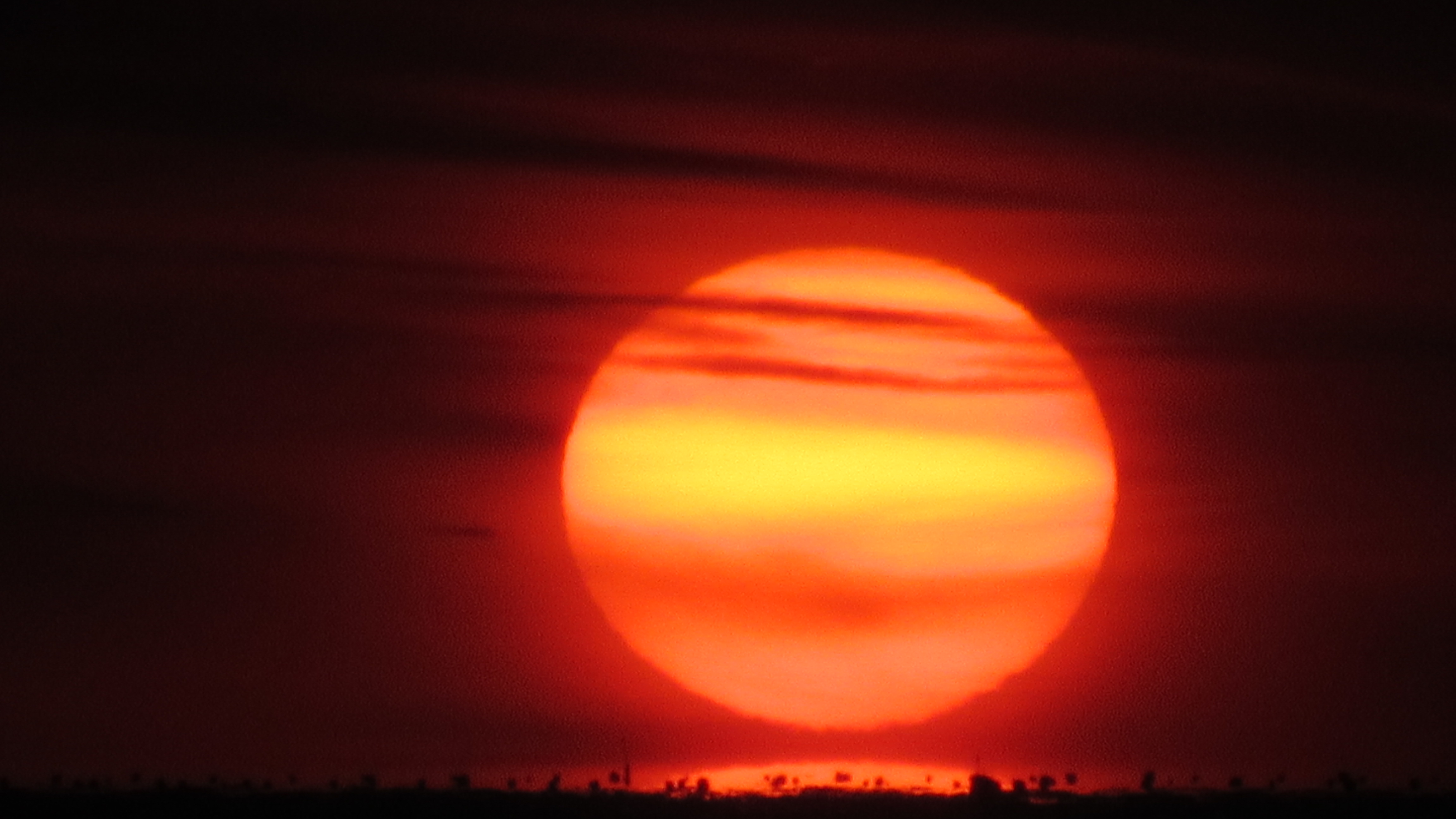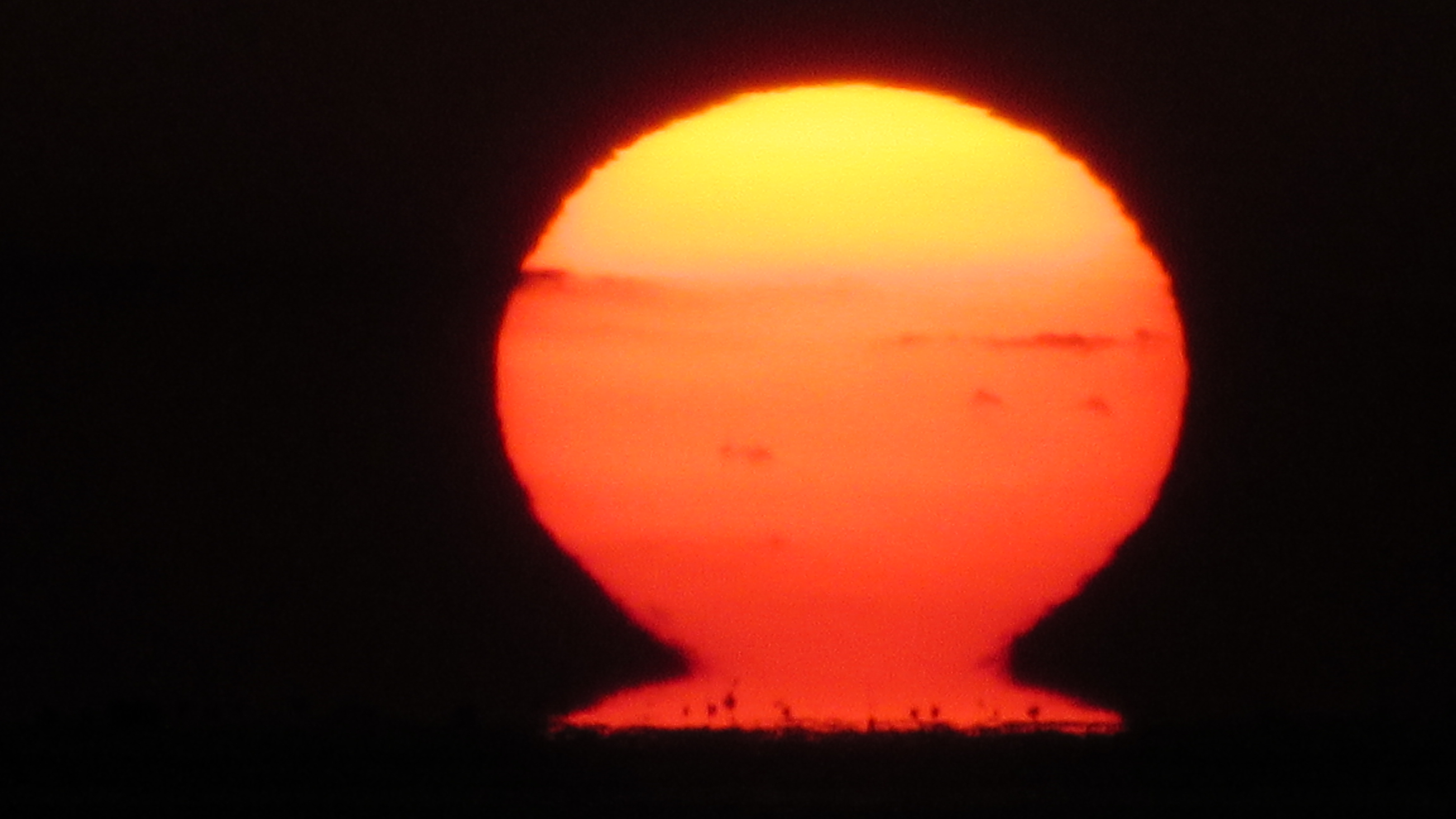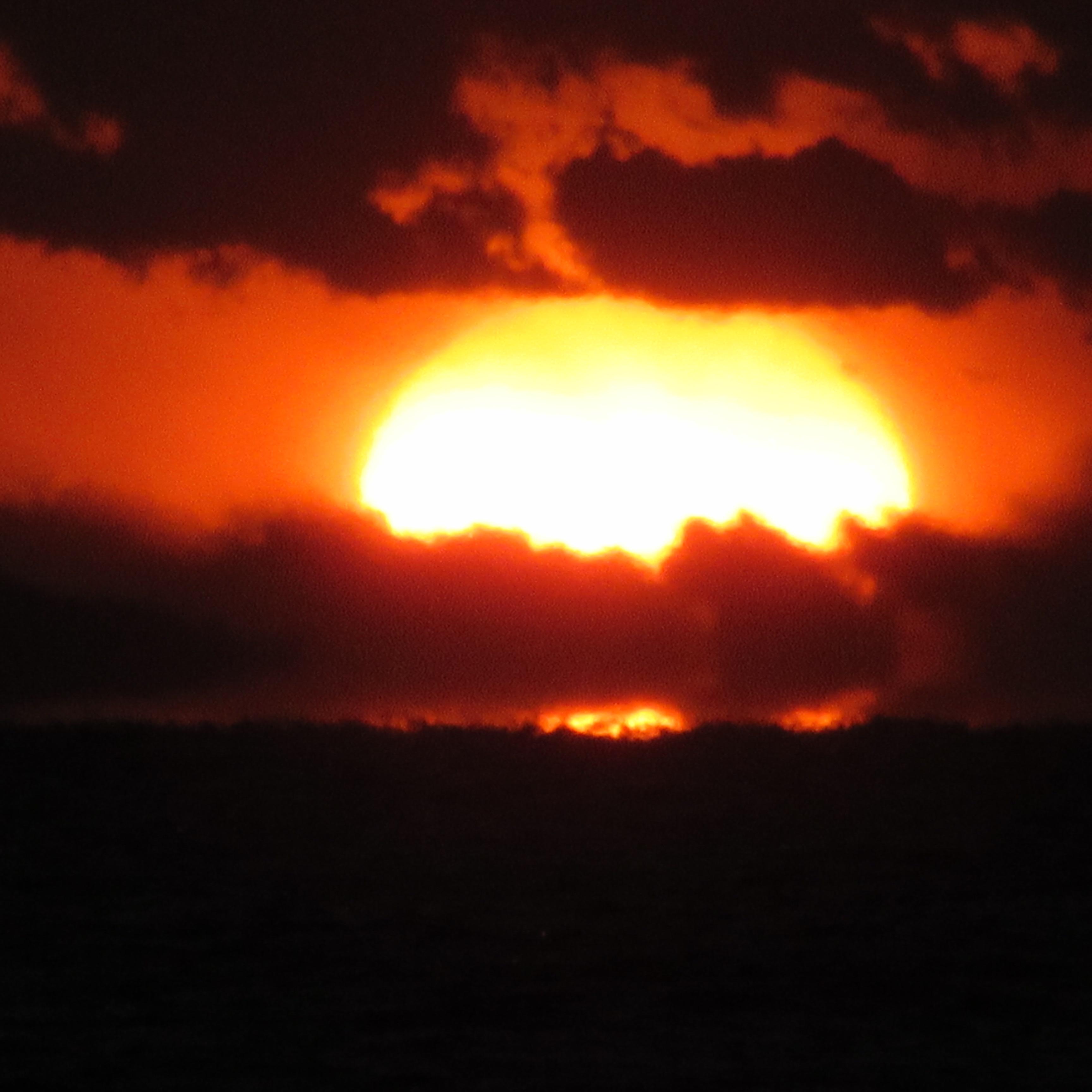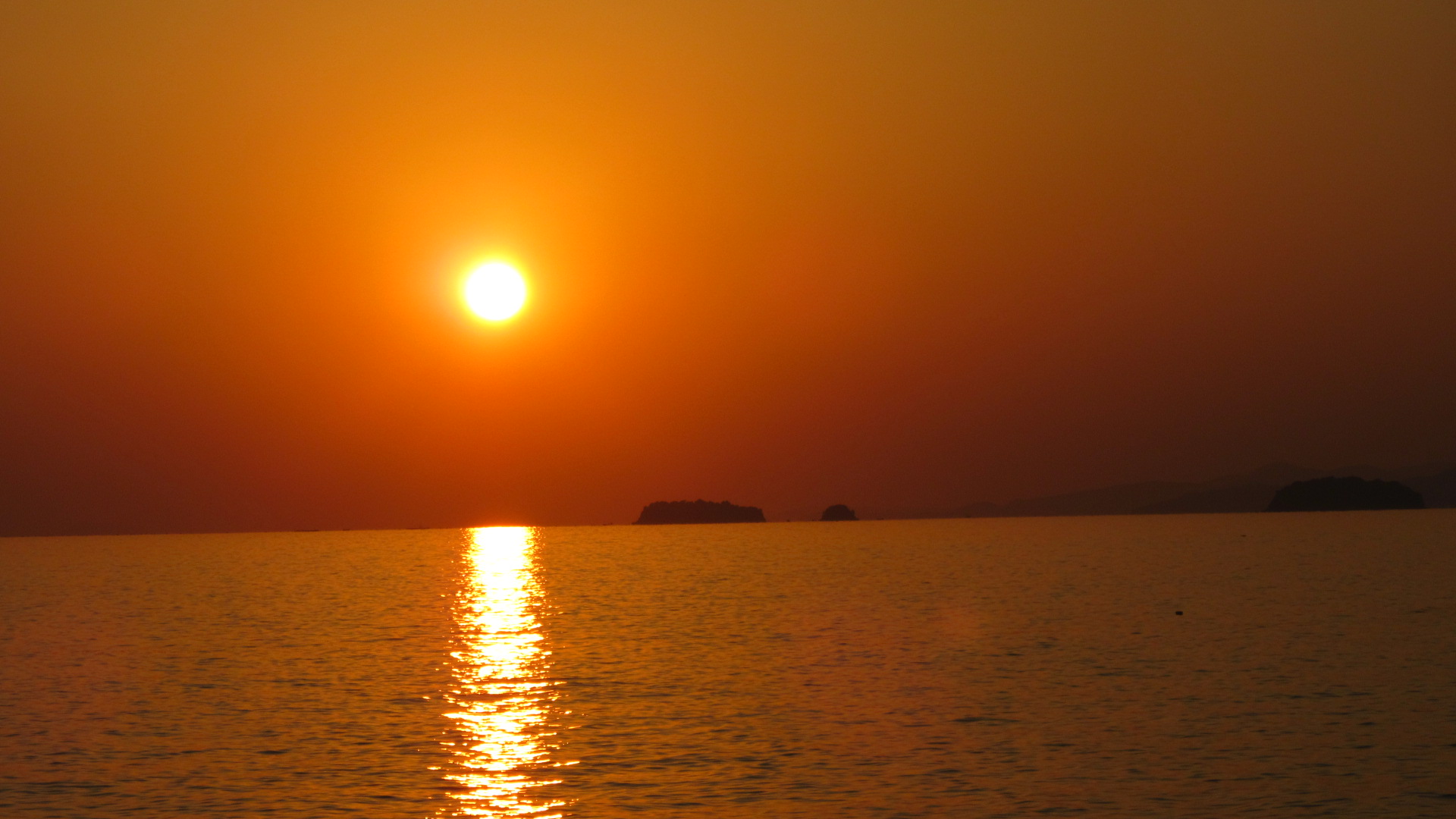それでも通い詰めればこんな『だるま夕陽』もグラデーション夕陽水平線に付いた瞬間です