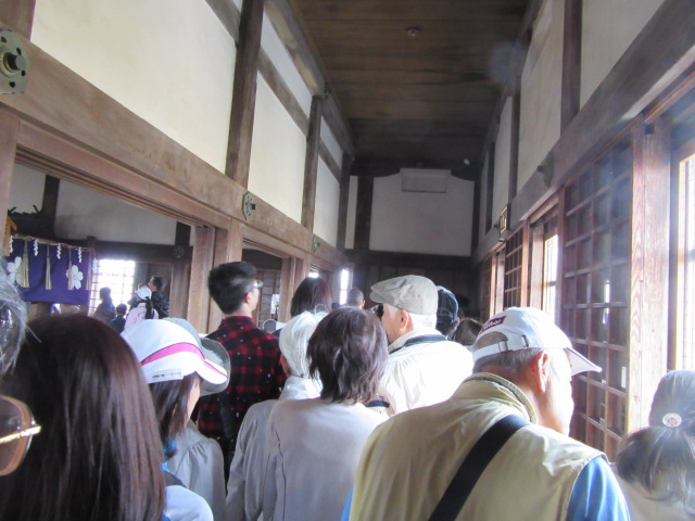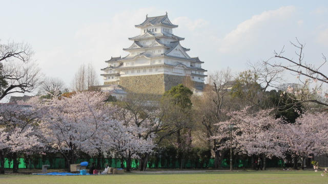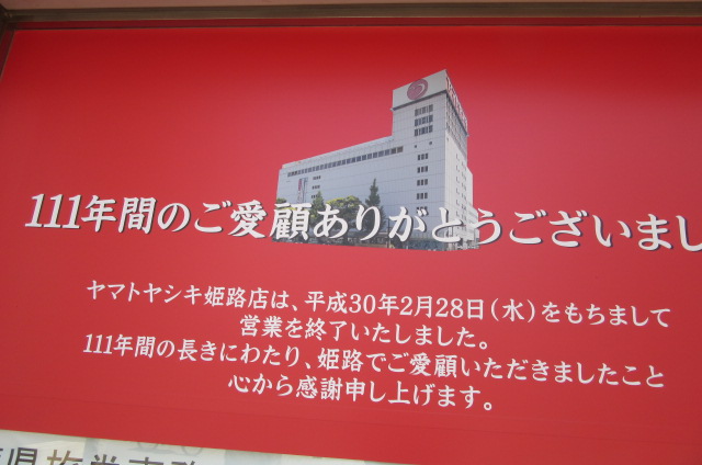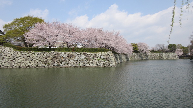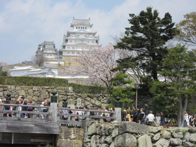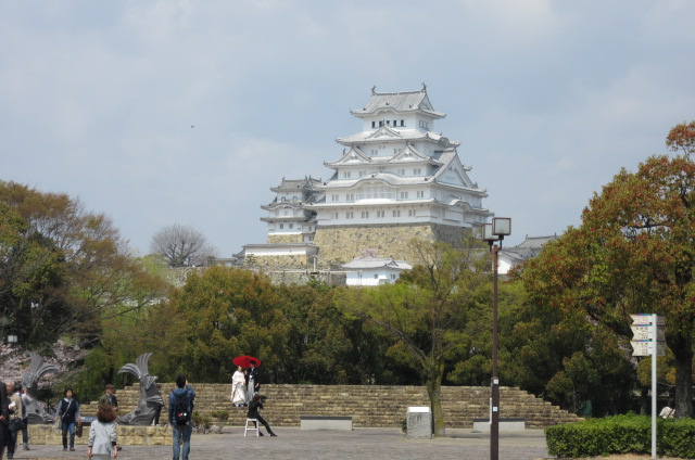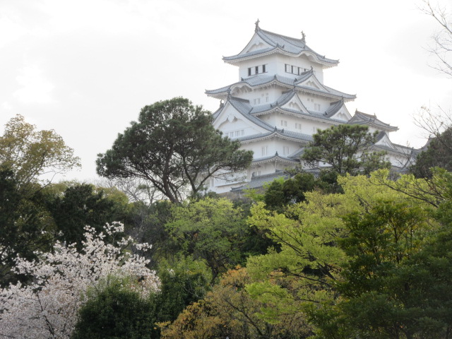 四季 2019/04/11 姫路城 春爛漫 春の陽気に誘われて、関西では少し遅咲きの桜を観てきました。わざわざ出掛けなくても、我が家の前にある見事な桜。今年はやや遅れ気味ですが、毎年近隣の住民の目を楽しませてくれています。 久々に地元の電車に乗り、ランラン気分。姫路の街に出掛けるのも、姫路城に出掛けるのも何年ぶりかな。この前は平成の改築の時だった。業務用のエレベーターでTさんと登りましたね。これは姫路駅にある展望台からの風景です。空がやや白んでいて『白すぎる姫路城』の白が目立ちませんね。駅前はスッカリ変わってしまい歩行者天国、またタクシーとバスしか出入りできません。駅前からお城まで徒歩20分くらいかな。ノンビリ人の流れに任せました。 途中懐かしいビルにこんなお知らせが。まだまだ市街地が元気だった頃、よく行ってた『ヤマトヤシキ』。贈物と言えば『ヤマトヤシキ』の包装紙が一番と言ってた時代、駅前の『山陽百貨店』と人気を二分していました。郊外店が増え、車でここまで来る不便さもあり、だんだんと行かなくなってしまった。加古川に出すくらいなら、駅の南に店舗を出さなかったのが不思議です。 大手門へ行く前に、やや東側の『城見台』からご挨拶。ひと組、記念撮影していました。姫路城は観る角度で、色んな趣があります。市民でも『コレはどこの城?』という角度もあります。 大手門前の風景です。内堀と土塁の桜は今まさに満開です。風が微かに吹いてますが、ここの桜は散っていませんでした。 大手門入り口からの姫路城です。『ここはどこ? 』と思えるくらい多国語が飛びかってます。大阪のオバチャン風東洋人の五月蠅いこと、どこへ行こうがまた別の集団に出会う。石垣に座って城を眺めながら弁当を食べようかとしてると、囲むように5~6人の集団が30cmの隙間を空けろというような仕草。居座ってるのでせっかくのお城が見えない有様です。根負けして早々に立ち去りました。 せっかく来たのだから登頂に挑戦します。梅や桃は微かに花の香りが香るけれど、桜はお酒の臭いやバーベキューの臭い?お城と桜を絡めて何枚も撮りました。空が快晴だともっと映えるのですが、お城方向に雲が絶えず通り過ぎます。 花だけの見事さはやはり自宅前が一番ですね。満開でないものや、散りかけている樹もありました。この前ここへ母と桜観に来たのは、いつの頃だったのか。 入場料を払って最初の『菱の門』を潜ったら見える風景。最高の構図ですね。空が青ければもっと映えるのにね。 少し進んだところからが、今回のベストかな(^^)/~~~ 1時間掛けて5階まで登りました。通勤電車並みの大渋滞、階段の手前では一列になって順番待ち。苔むす石畳や手すり付きのかなりキツい階段を、日頃の怠慢な肉体にむち打って登り尽きました。でも山道と同じく降りの方が大変でした。危険防止用『2cmの鉄格子』の間から眺めた姫路駅前方向。やはり微かに霞んでいますね。眼下は三の丸広場、続いて通称『50メーター道路』突き当たりがJR姫路駅です。 最上階はご覧のとおり大渋滞。コレで地震が起きれば、パニック???6割以上が、いやもっとかな? 日本語が聞こえても、今日は上品に聞こえます。幸い割り込んだり、ゴミのポイ捨てなどもなくてホッとしました。 天守閣から降りてきた所の『るの門』付近の枝垂れ桜です。個人的にはソメイヨシノより、お気に入りです。 出口付近で知り合ったガイドさんに教わりました。『日本タンポポ』です。小さな頃よく見かけてたのに。 西の丸からの風景です。ここからも良いですね(^^)/~~~ 内堀が見える土塁に登ってみました。眼下を遊覧船がゆったりと進んでいきます。春ですね~。 乗ってみようかと思ったけれど、まだ就航時間はあるものの満席でした。 その船を追うように、お城の周りを右回りで一周する事にしました。以前車では行き来しましたが、歩いては初めてです。これはお城の北側。観光客が良く見る風景の反対側。石垣もなくコレを見る限り『山城』です。本丸の石垣から下は、堀です。 北東角からです。付近には博物館や美術館などがあります。また有名女学園や国立病院などがあります。 東側からです。西日が当たり逆光状態です。コレを見る限り、姫路城ってわかる人は居ますか?どこにでもあるどこかのお城? 最初の城見台近くまで戻ってきました。これで登頂と、右回りでの姫路城散策終わり。お疲れ様です。 駅前の炉端で一杯と思ったのですが、時間が早い事などで今日は食事のみ。熊本料理店の『馬刺し』に誘われて店内へ。『馬刺しの盛り合わせ』ともう一点頼んだ。待てど暮らせど本命の『馬刺し』は出てこない。『もう一点』と『突き出し』は早々に出て来たのに、催促して5分で出てくるこの滑稽さ。注文確認の時と、やっと出て来た時に『忘れてたやろ』の問に、『いいえ』とはたいした教育。恐れ入りました。でも『馬刺しは今までで一番美味しかったよ、すぐに出ていれ
