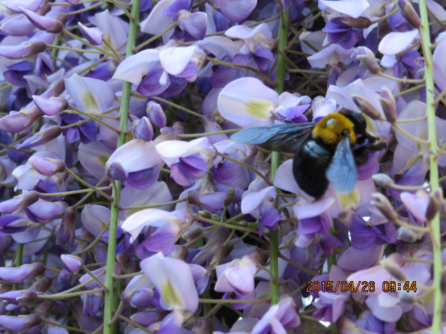 四季 2015/04/22 我が家の春 あれだけ雨が降り続いたのに、今日から晴天ウィークが始まりました。庭先の藤の花も例年通りこの晴天に合したように次々と開きだしました。甘酸っぱい香りに引き寄せられて、大柄の蜂が飛び交ってます。 また鉢植えのブルーベリーも花盛りです。花も楽しめ、実も楽しみ紅葉も楽しみです。でも管理も大変、水切れとイラガの幼虫にも悩まされますね。 久々に見る夕焼け。曇よりとした日々が続いていただけに、何とも嬉しいですね。思わずカメラを片手に夕焼けを追いかけてみました。 初夏のような陽気で他の花も今盛りのように咲き誇っています。そのひとつが牡丹です。例年は雨に降られるのですが、今年は見事です。 藤も満開に近づいてますね。ひとつの枝にこれだけの花の塊ができます。 藤独特の香りに引き寄せられて蜜蜂がきます。例年のこのクマバチの訪問は嬉しいですね(^v^)羽音を必至に鳴らし、花から花へ忙しく飛び回っています。襲う事も無く大人しいハチですね。 PR