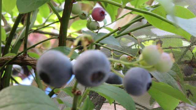 四季 2016/07/16 ブルーベリーの収穫 梅雨が明けたかと思ったら、雷雨だったり。そんな猫の目天気の今日、思い切って、ブルーベリーの収穫にかかった。と言いつつも今年は、不作。去年の選定のミスと肥料不足に加え、この天候不良。毎年10本近くジャムにするのだが、今年はあきらめました。そのぶん実を一粒ずつ、味わう事にしました。実が落下するまで完熟させたら良いのですが、ムクドリの餌食になったのか、一番大きな実が被害に遭いました。予感がしてて別にしていたのですが、それでもどこを捜しても見つかりません。 昨日の夕景です。この数時間前まで雷雨だったので、虹を期待してカメラ待機してたのですが、やはりダメでした。それでも夕景は素晴らしかったです。最近全天の夕景って無いですね(^_^;) 残っていた実では大きい方です。本当は落下まで待ってた方が美味しいらしい。 たいていはこんなもの。果たしてこの中のどれだけが収穫出来るのでしょうか。 今日の収穫(^^)/~~~ ヨーグルトに入れて頂きま~す(^^)/~~~