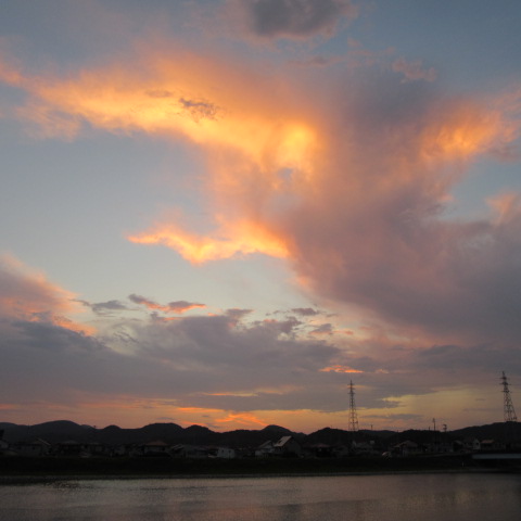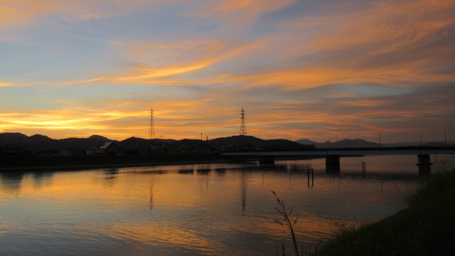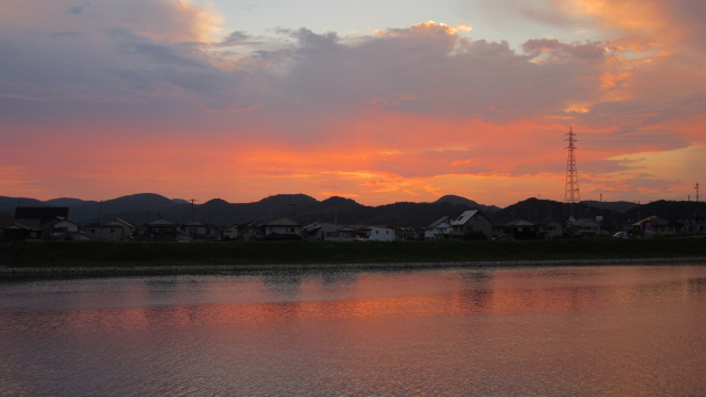 四季 2016/07/31 夏の日の夕暮れ うだるような暑さの日々が続きます。でも陽が沈み、川沿いに夕陽を録りに行くと、涼やかな涼風が快いですね。1kmも下ると瀬戸内、ときおり潮の香りも頬をかすめます。 遠くで雷鳴、雨が降れば涼しくなるのですが、儚い夢ですね。それでも陽が沈んだ後の小焼けも綺麗です。