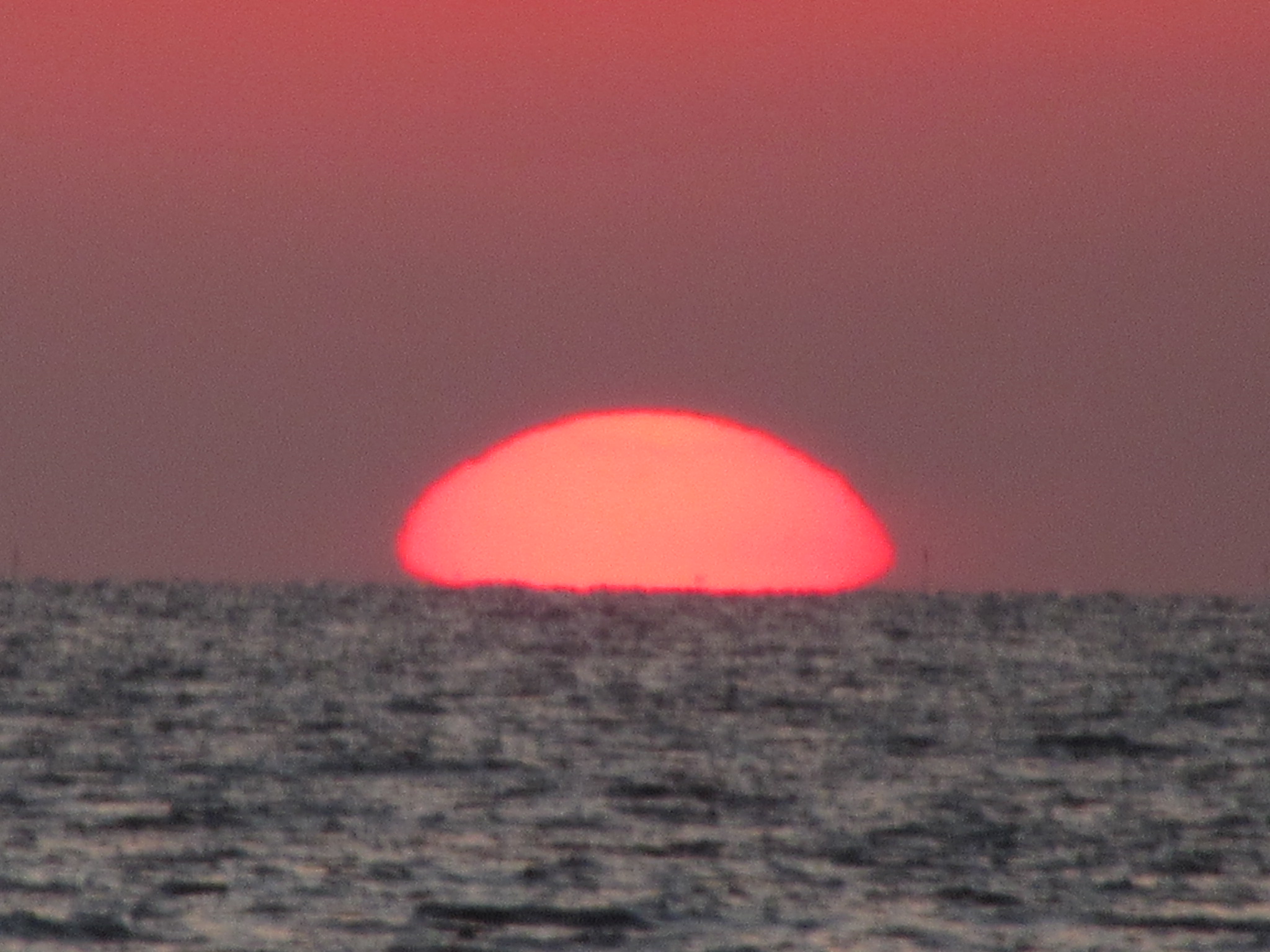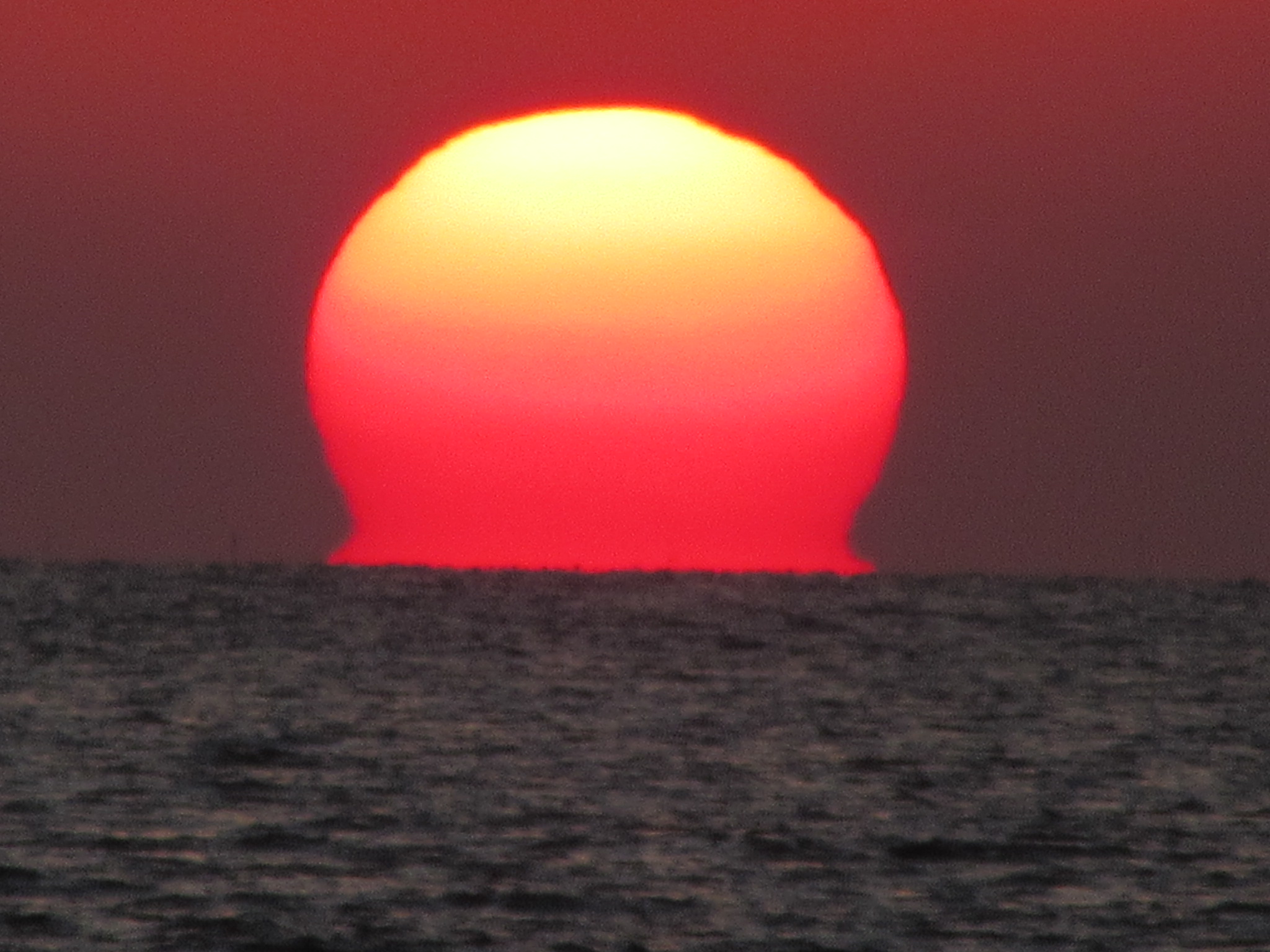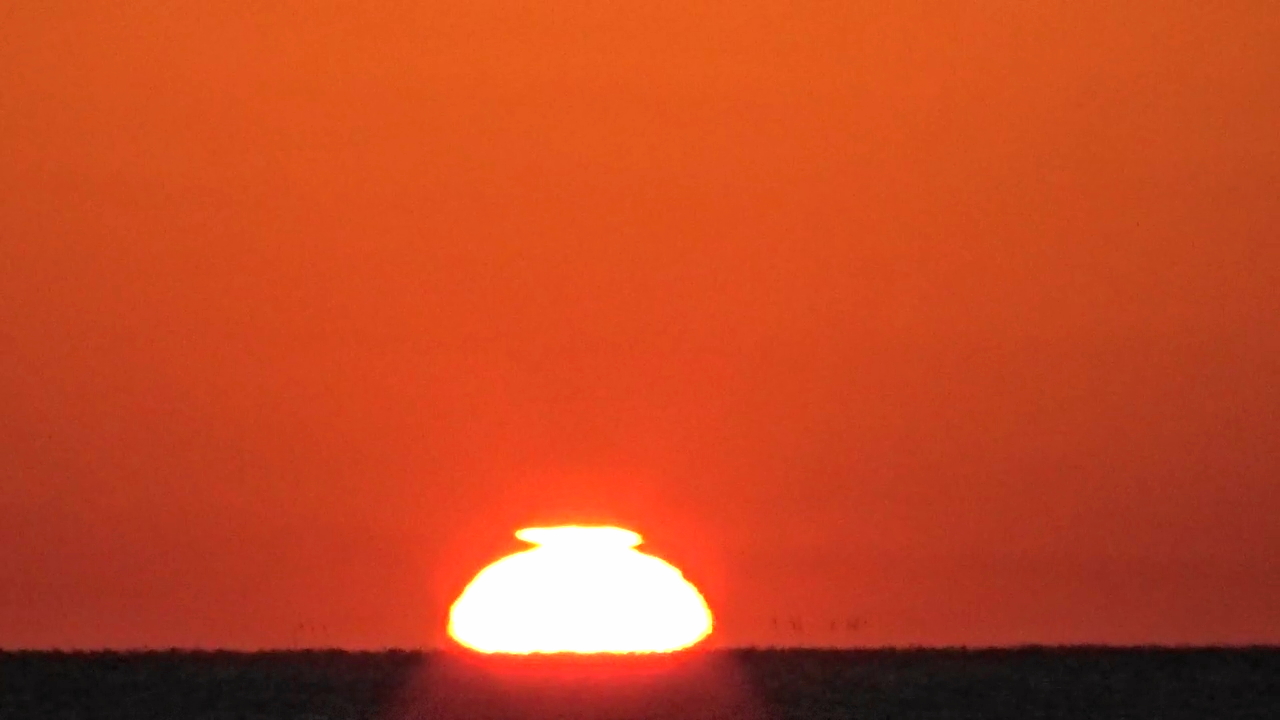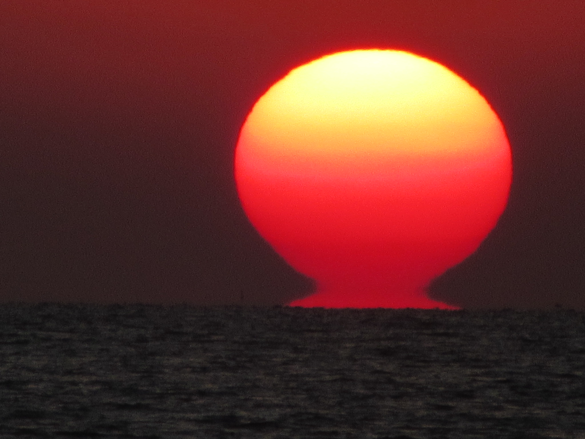 四季 2020/11/21 だるま夕陽と奇跡?のような夕陽 一年ぶりの更新。あっちのブログというより、最近はTwitterばかり。便利なようでも忙しい。ここも少しは、更新しないとね (^_^)v 最近ビデオカメラなるものを買った。その動画から切り出した夕陽を貼り付けてみようかと。始めて撮れたものの、蜃気楼なのか雲に反射しているのか。皿に載っかったようなお日様と、帽子を被ったお日様。まただるま夕陽。よくこんな奇跡のような夕陽が撮れたものです❤ 一昨日まで真夏日寸前まで暑かったのが、昨日寒冷前線が通過して空気が入れ替わった。通常だとスンナリしただるま夕陽になるのだが、少しばかり温かい空気が残っていたために、こんな現象になったのでは、と考える。雲かも知れないけれど、昔気象を少しかじった者には蜃気楼と考えたい。
