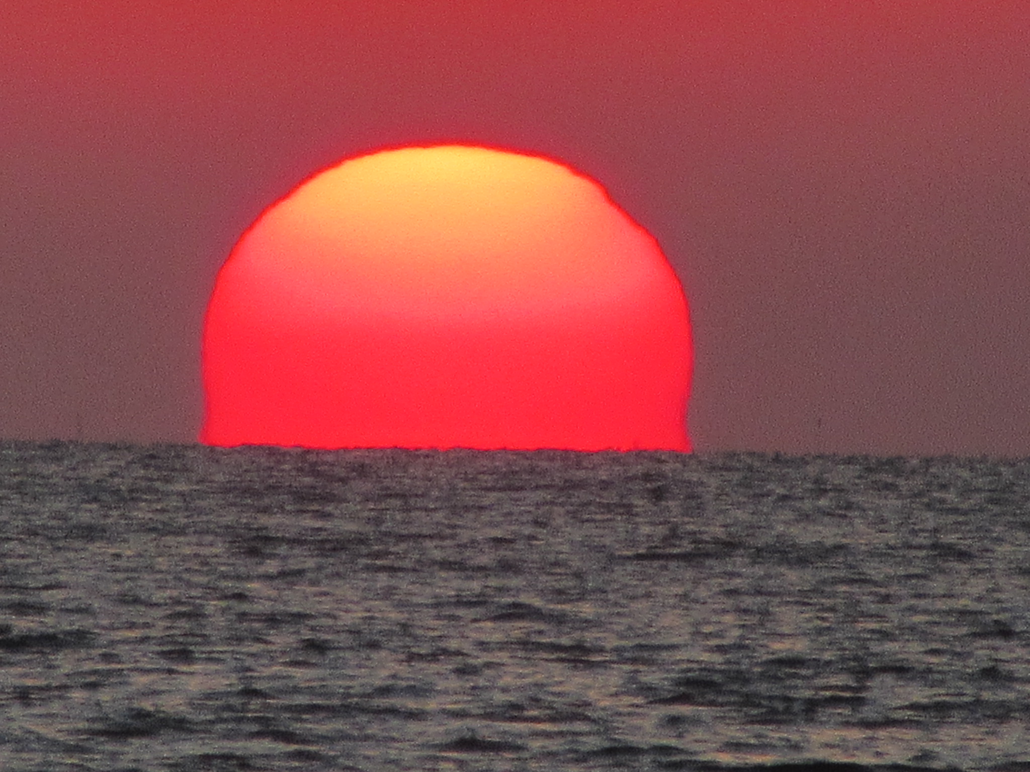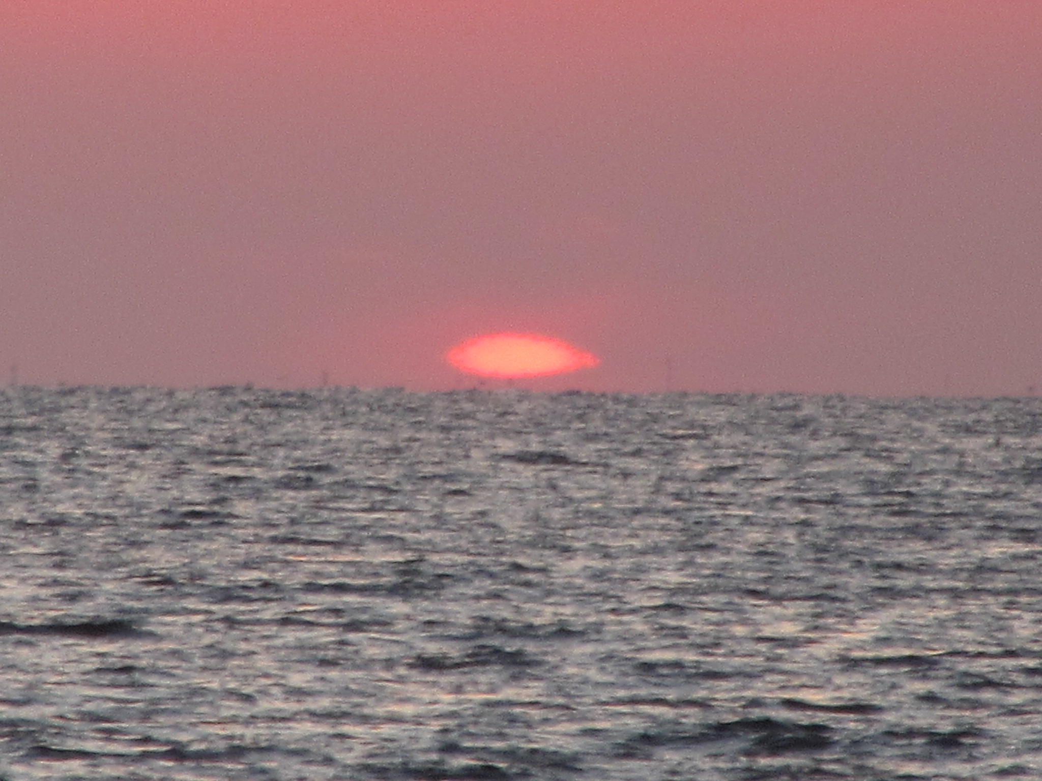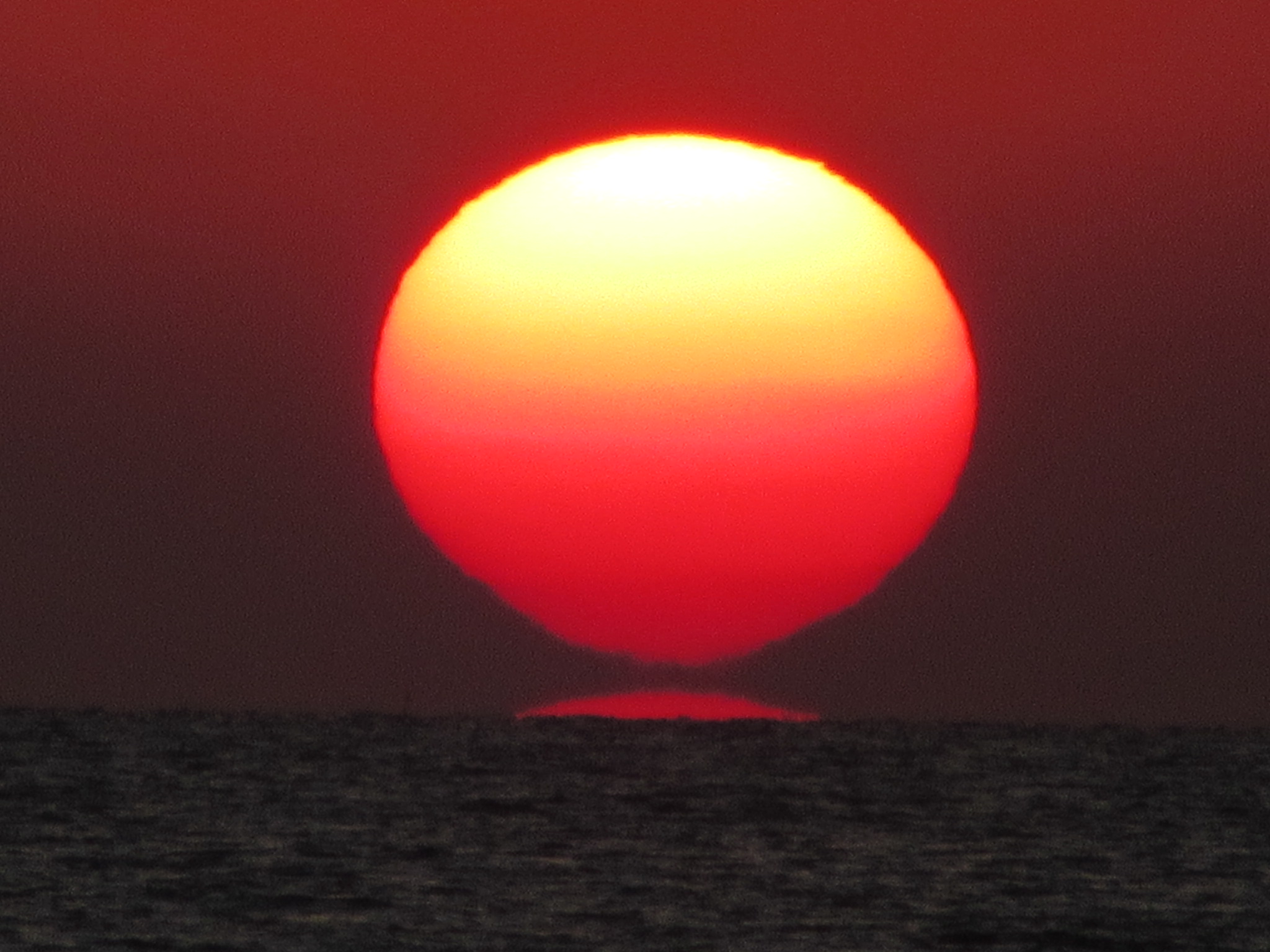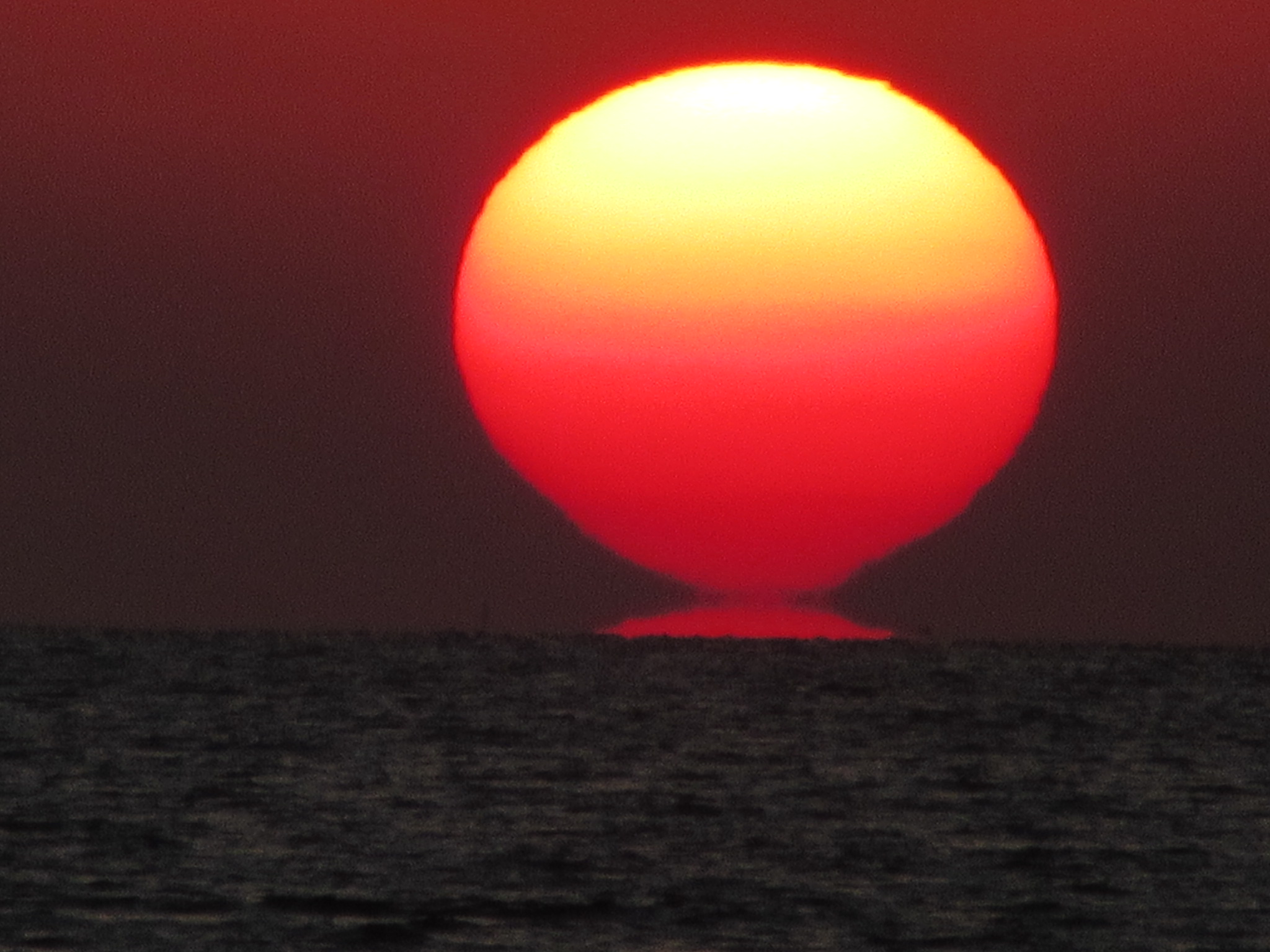 四季 2020/11/21 だるま夕陽と奇跡?のような夕陽 一年ぶりの更新。あっちのブログというより、最近はTwitterばかり。便利なようでも忙しい。ここも少しは、更新しないとね (^_^)v 最近ビデオカメラなるものを買った。その動画から切り出した夕陽を貼り付けてみようかと。始めて撮れたものの、蜃気楼なのか雲に反射しているのか。皿に載っかったようなお日様と、帽子を被ったお日様。まただるま夕陽。よくこんな奇跡のような夕陽が撮れたものです❤ 一昨日まで真夏日寸前まで暑かったのが、昨日寒冷前線が通過して空気が入れ替わった。通常だとスンナリしただるま夕陽になるのだが、少しばかり温かい空気が残っていたために、こんな現象になったのでは、と考える。雲かも知れないけれど、昔気象を少しかじった者には蜃気楼と考えたい。