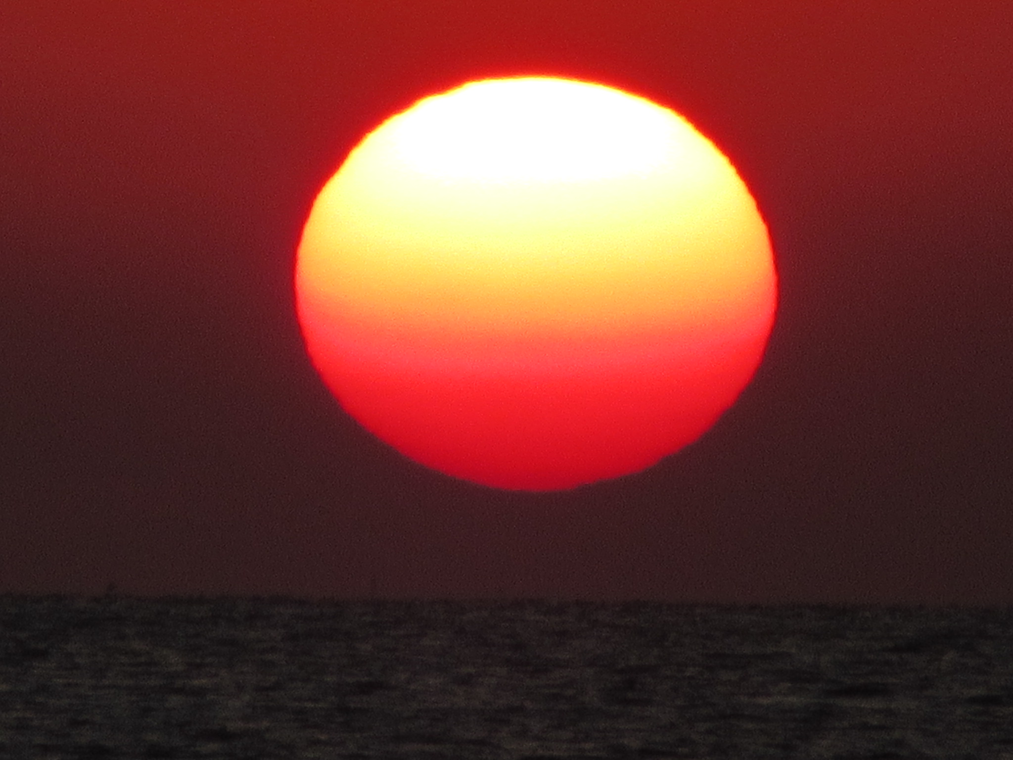 四季 2020/12/02 だるま夕陽 デジタルカメラの動画で何とか観られる『だるま夕陽』が撮れるなんて奇跡でしょうね雲が多かったり島の上に落としてみたり。やっとお気に入りかと思ってたら、途中でピンボケになってしまったり。雲が多くてダメだろうと思ってたら、今回見事に水平線に沈みだるま夕陽になってくれました。苦労して構えていて、ホッとする瞬間です。皆さん望遠レンズで撮ってますが、自然条件が同じでも撮れない時の落胆は大きいでしょうね。こんなのが有るから、やめられません。高砂伊保港 10/31 地元といっても渋滞の中を、車で1時間。あまり代り映えしない普通の『だるま夕陽』ですが、本人には感動ものです。『皿と帽子』に関し、『雲』だとの思いと『空気層の境』との思いがあります。いずれにしても偶然の奇跡、上手い具合に撮れたと思っています。飾磨中島埠頭 11/21