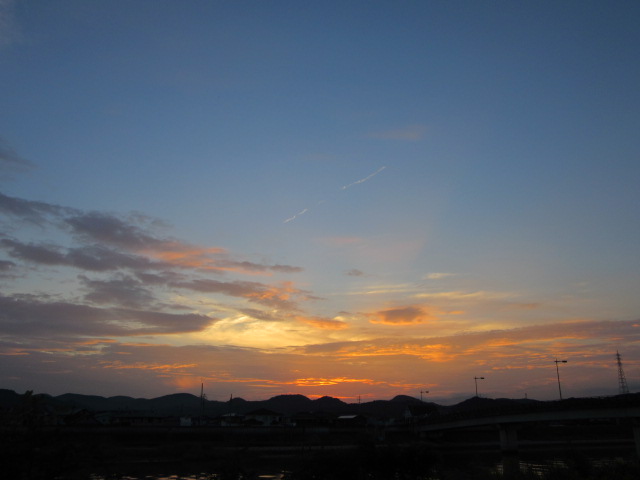 | これがそのアップ画像。雨雲から霧雨が降り、西陽に映えてるのです。 もしも東の空にこのような霧雨が降っていれば、虹なんでしょうね。 凍える北海道などでは、ダイヤモンドダストになるんでしょうか。 いずれにしろこんなのは偶然の産物とはいえ、心洗われますね(^_-)-☆ |